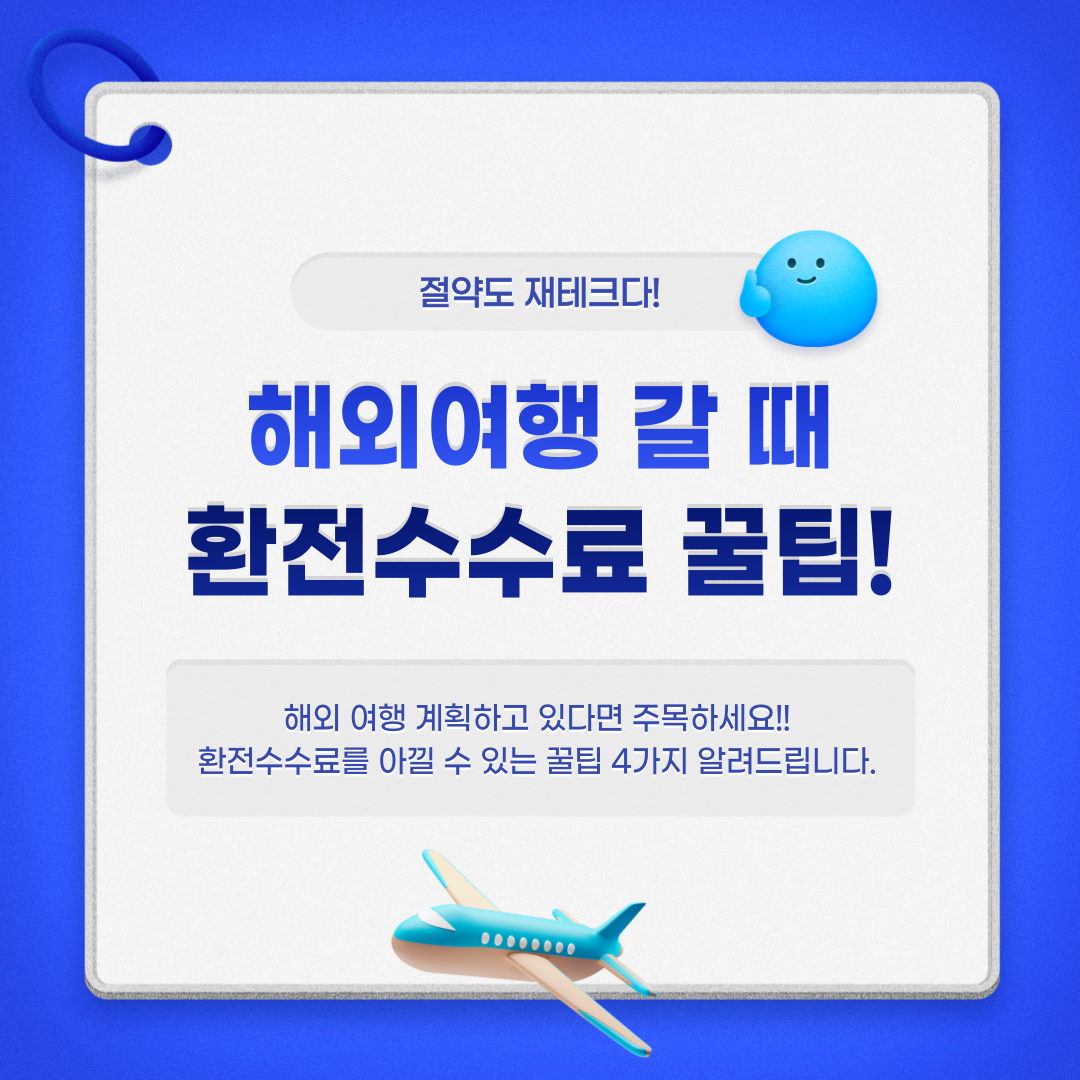 재테크를 계획한다면 필요 없는 소비를 줄이는 습관이 필요합니다. 환전 수수료 또한 큰 돈이 아니라도 이와 같이 절약할 수 있는 방법들이 있으니 효율적으로 절약하시고 경제적 자유를 위한 미래에 한걸음 더 가까이 다가가시길 바랍니다.